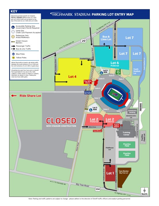 With Lot 3 unavailable due to construction, the Bills are implementing other changes to the lots available for presale. (A parking map for Highmark Stadium can be viewed below.)