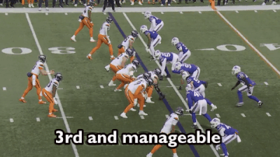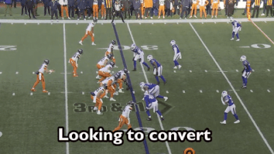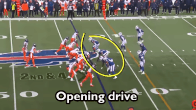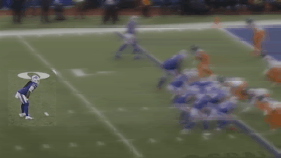 I like to show contrasting plays sometimes as an option to define the game by the outlier. They never get picked, but I still enjoy the idea. Anyway, here’s the Broncos sole score. There was almost a second one. I almost grabbed a GIF of the near score, a doinked 50-yard field goal attempt to end the half.