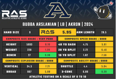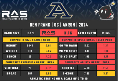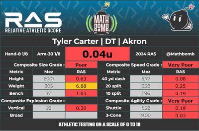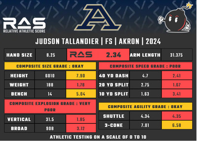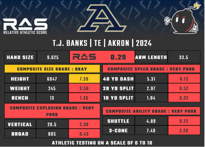 For our reports, we’ve pulled raw numbers from Draft Scout and RAS.football to assemble the RAS cards, which are used with express written permission of RAS’ creator Kent Lee Platte.