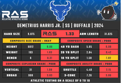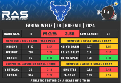 For our reports, we’ve pulled raw numbers from Draft Scout and RAS.football to assemble the RAS cards, which are used with express written permission of RAS’ creator Kent Lee Platte.